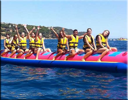 En esta actividad una lancha motora tirará de una banana hinchable en la que tendréis que montar todo vuestro grupo.